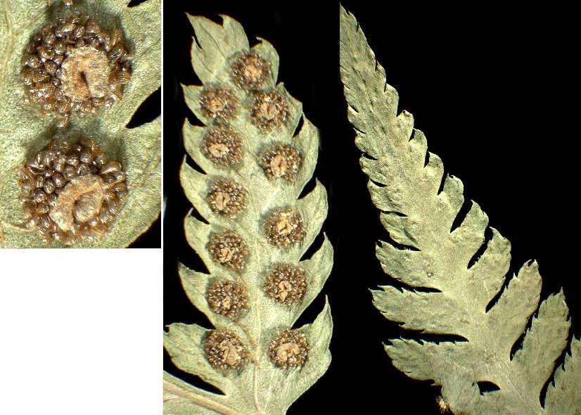 Sõkalsoomused leherootsul kahevärvilised, keskelt tumepruunid kuni mustad, serval helepruunid. Eoslate kattemembraan varreliste näärmetega