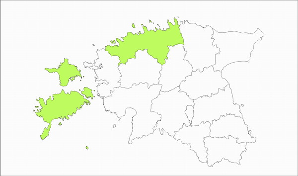 Eestis üsna haruldane; teada lääne- ja põhjasaartelt ning põhjarannikult, mitmed leiud on väikesaartelt.