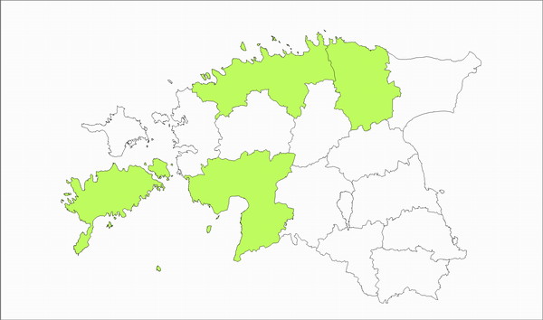 Liiki on leitud võrdlemisi vähestes kohtades Põhja- ja Lääne-Eestis.