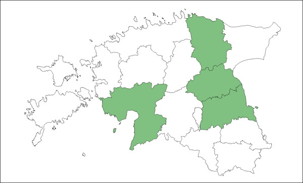 Eestis teada viiest leiukohast. Soomes esineb vaid riigi lõunaosas. Euroopas Lääne- ja Kagu-Euroopast kuni Fennoskandia ja Põhja-Venemaani. Teada ka Islandil, puudub Mediterraanses piirkonnas. Mujal maailmas Aasias Siberis ja Põhja-Ameerika lääneosas.
